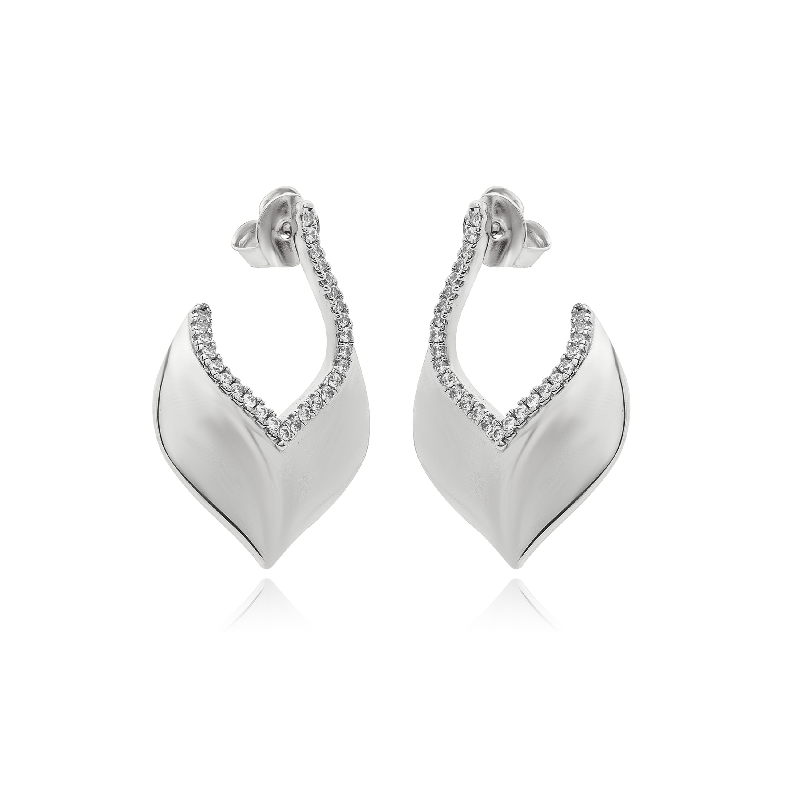 Σκουλαρίκια ασημένια καρφωτά σε κρεμαστό σχέδιο με ζιργκόν καρφωμένες πέτρες.