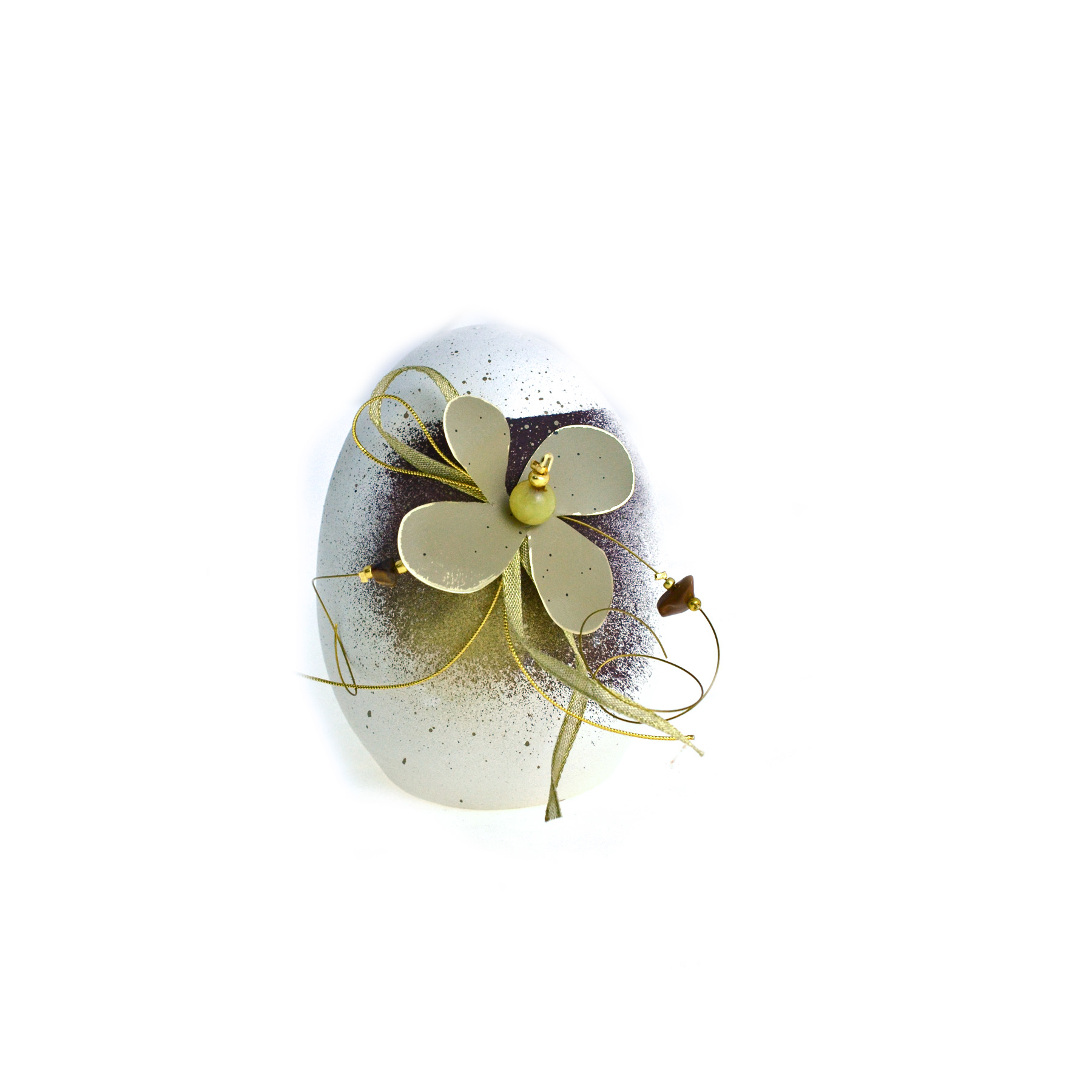 Διακοσμητικό αυγό ανοιγόμενο μεσσαίου μεγέθους με ματ χρώματα και μεταλλικά λουλούδια.