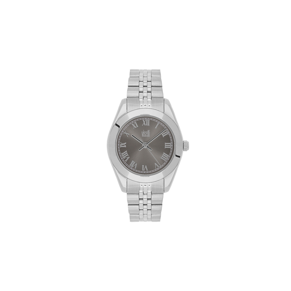 Ρολόι με μπρασελέ ασημί και κάσα από ανοξείδωτο ατσάλι με δύο χρόνια εγγύηση.