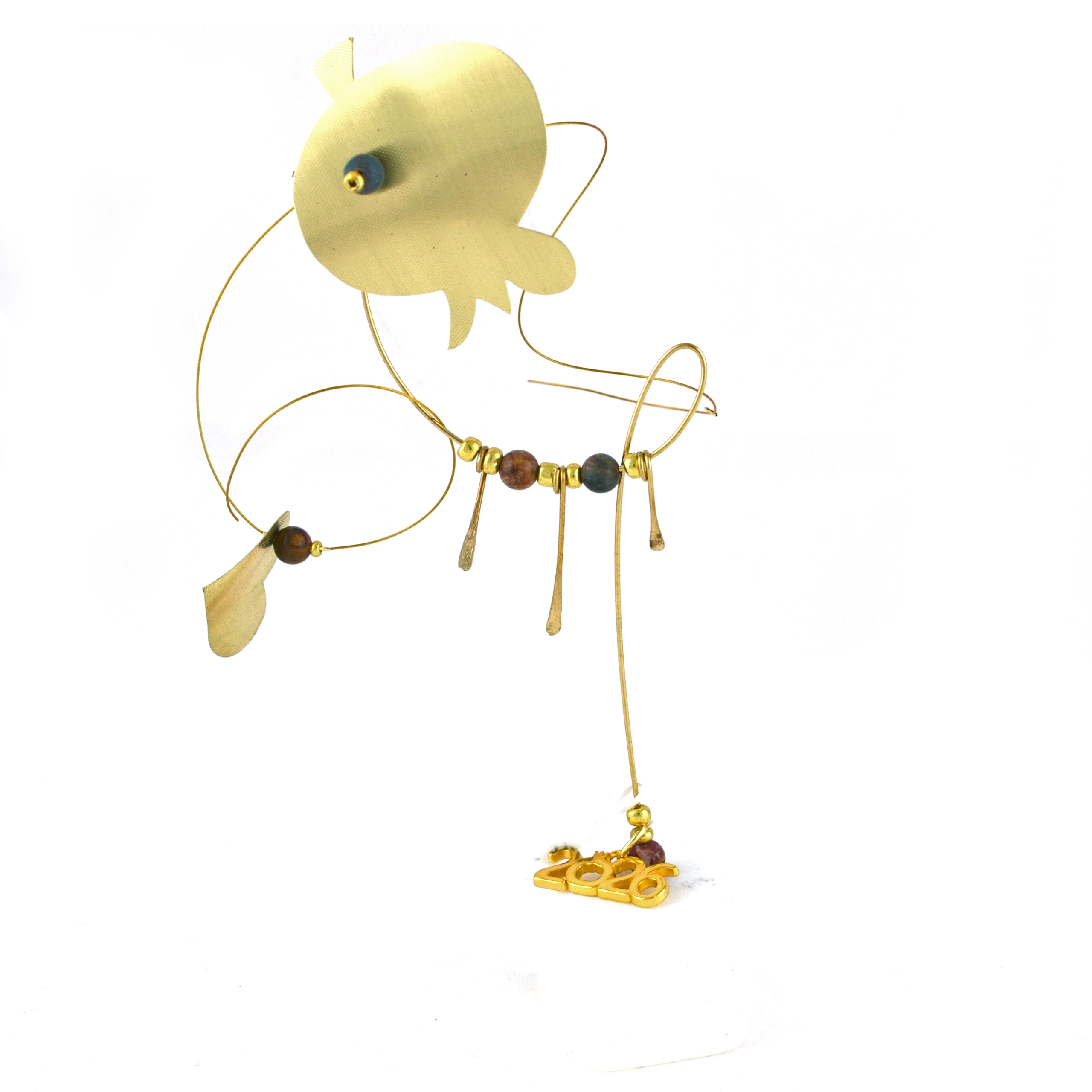 Διακοσμητικό χειροποίητο πάνω σε μαρμάρινη βάση και ρόδι με κορδέλες.