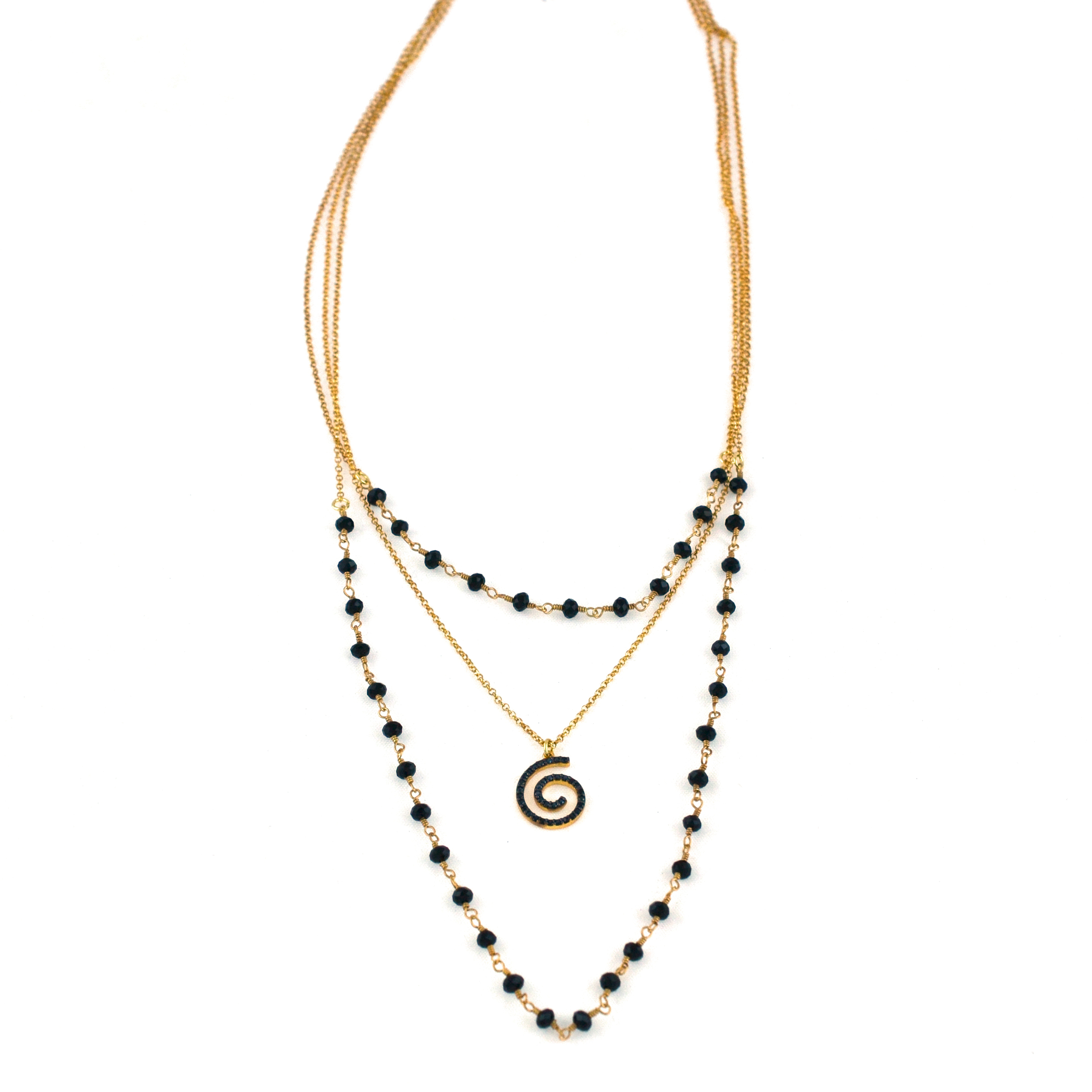 Κολιέ ασημένιο απιχρυσωμένο με τριπλή σειρά αλυσίδας και πέτρες όνυχα.