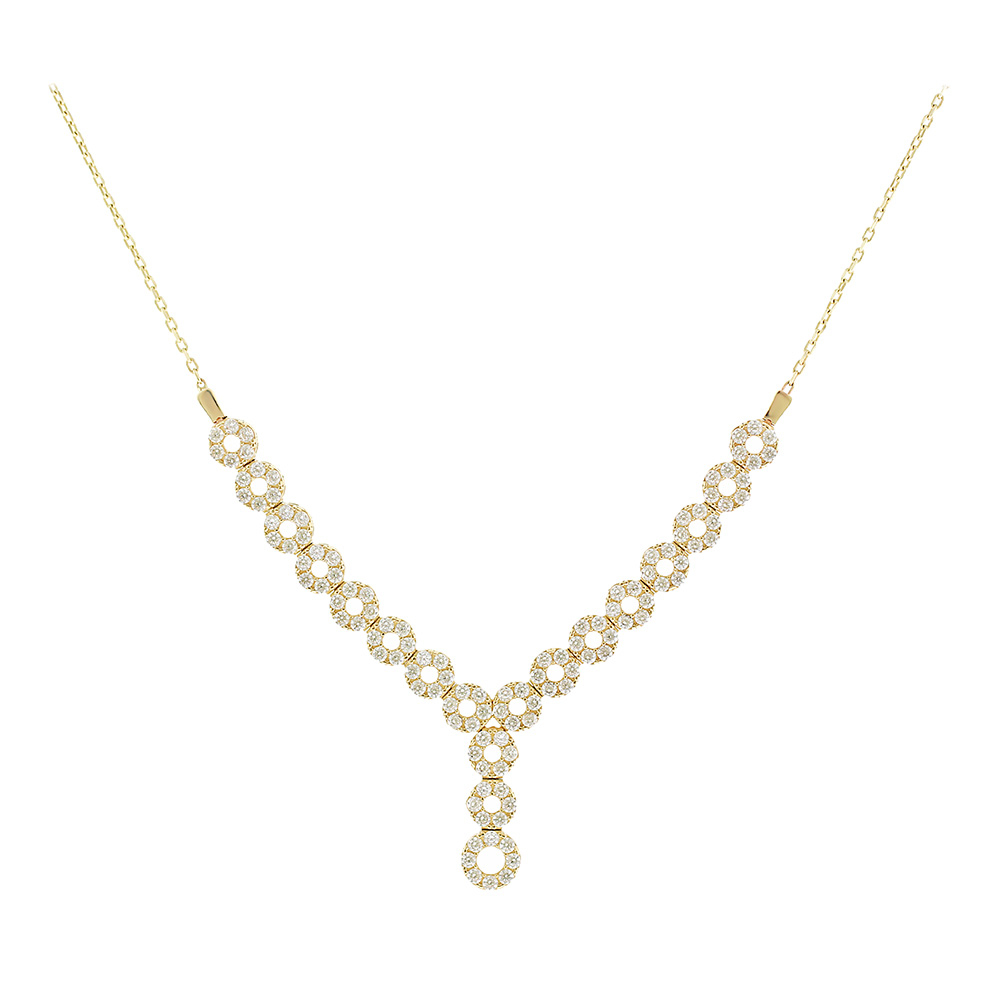 Κολιέ 14 καρατίων σε χρυσό χρώμα με ζιργκόν πέτρες σε σχέδιο κύκλων σε στυλ ριβιέρας.