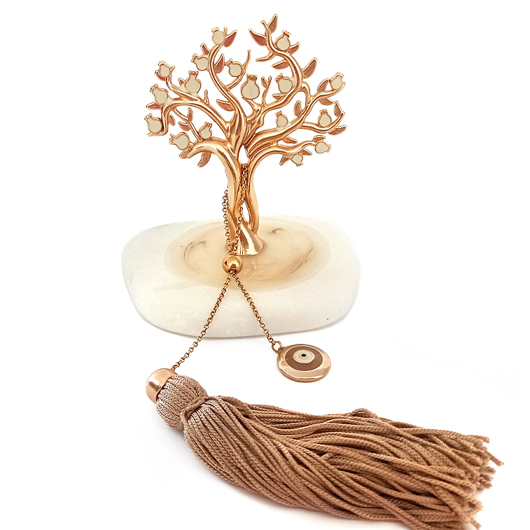 Χειροποίητο διακοσμητικό μεσσαίου μεγέθους πάνω σε μάρμαρο με μεταλλικό δέντρο από ρόδια.