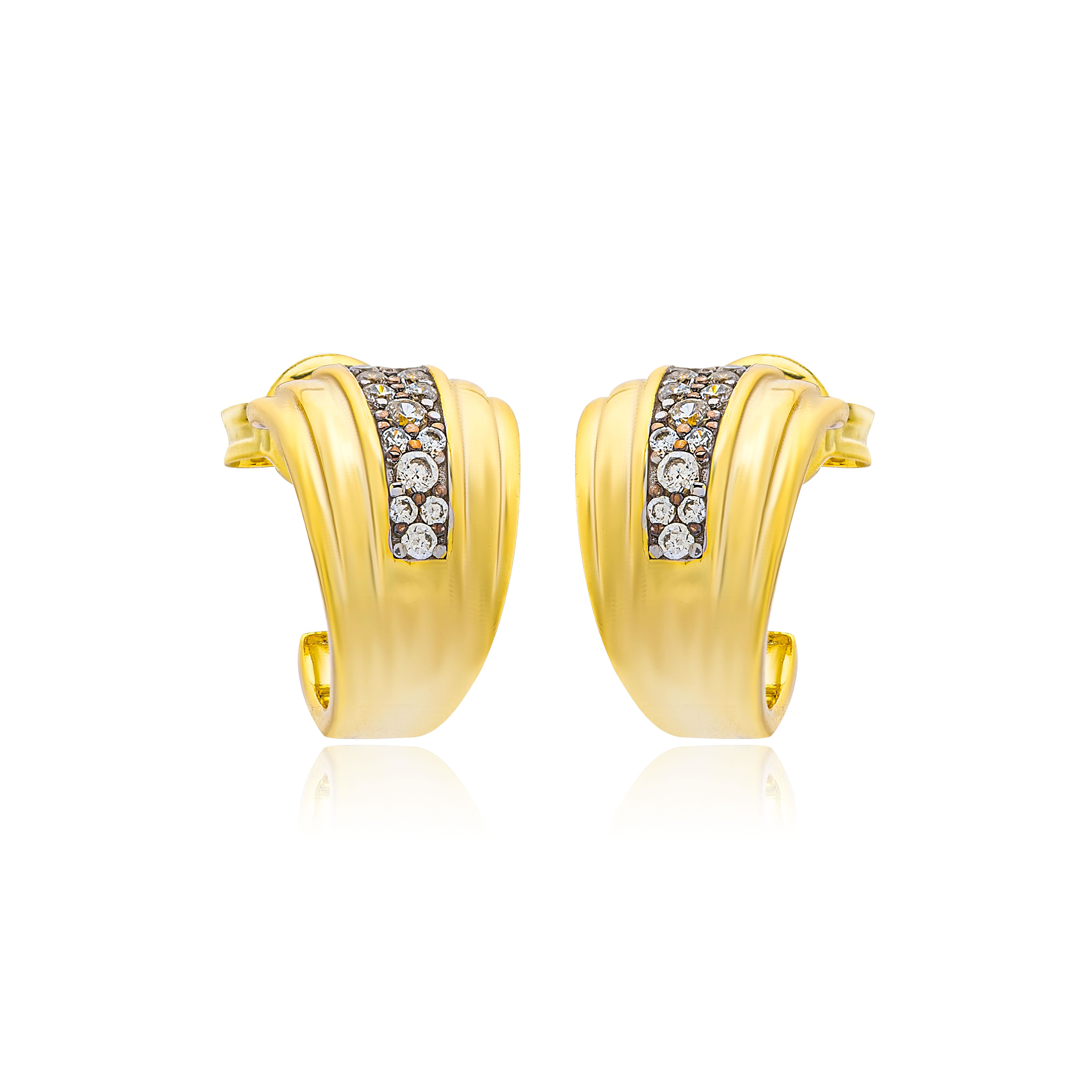 Σκουλαρίκια τύπου κρίκων μικρού μεγέθους με ζιργκόν πέτρες καρφωμένες.